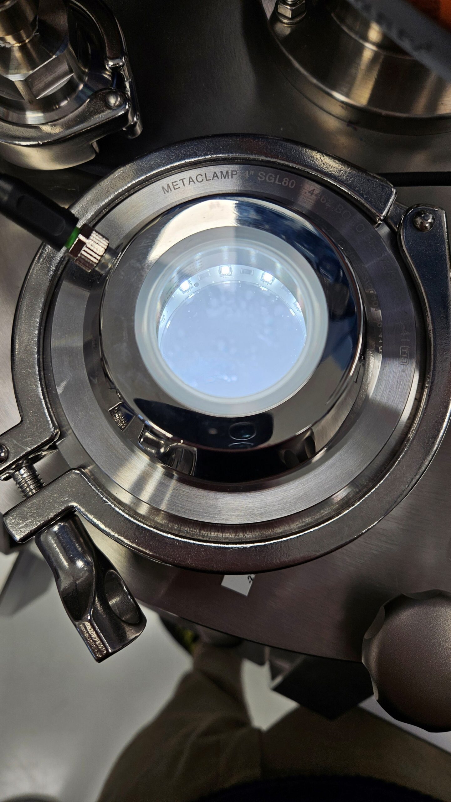 The frame is fitted with wheels, allowing ViscoTreat-I Slurry to be used as a mobile unit within a production environment. A lifting function locks the wheels and secures the system in place. A sight glass provides an overview of the slurry quantity in the container. An LED light ring ensures good visibility even under suboptimal lighting conditions.